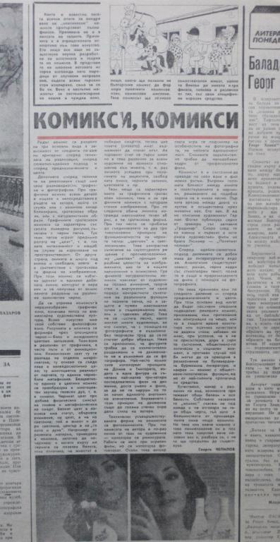 В периода 1987–1989 г., в гр. Пловдив, в условията на идеологически ограничения и липса на институционална и професионална рамка, са публикувани поредица от статии, посветени на теорията, естетиката и езика на Деветото изкуство – комикса. Тези публикации са дело на Георги Чепилев и излизат във вестник „Комсомолска искра“ и " Пловдивски университетски вестник" под редакцията на Емил Стоянов. Те представляват първия системен български опит за философско, естетическо и семиотично осмисляне на комикса като самостоятелна художествена форма.