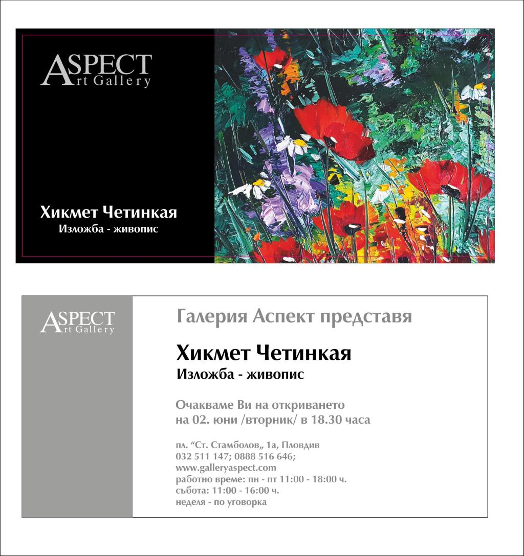 Галерия "Аспект" посреща летния сезон с изложба живопис на художника Хикмет Четинкая. Изложбата се открива на 02 юни 2015 от 18.30 часа и ще продължи до 22 юни 2015 година.