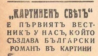 ДИАСКОП беше публикувал и друго съобщение, с което се доказа, че вестник КАРТИНЕН СВЯТ е първият вестник, който дава ПЪРВИ БЪЛГАРСКИ РОМАН В КАРТИНИ. Няма никакво противоречие или реклама за предимство. Още през 80- те години в статиите на основателя на ДИАСКОП се описаха видовете и жанровете на комиксите.