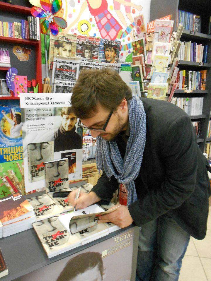 Петър Денчев може да е млад, но е амбициозен и кадърен. Вероятно го знаеш не само като писател, но и като театрален режисьор. Постановките му пътуват по международни фестивали, а прозата и поезията му напълно заслужено се радват на внимание и награди. Автор е на още един роман и на сборник с разкази.