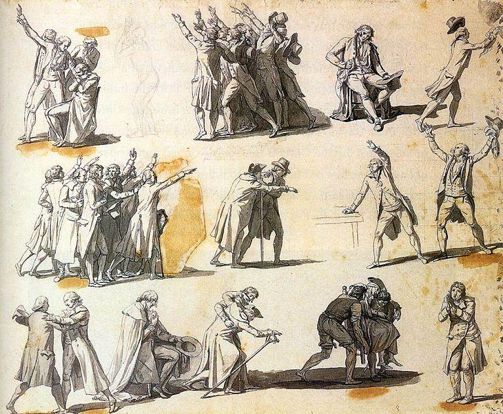 Революционното правителство през периода на Великата френска революция придавало голямо значение за развитието на агитационното изкуство. В решение от Комитета за обществено спасение (12 септ. 1793 г.) е записано: „Комитета по обществено спасение упълномощава депутата Давид да използва таланти и средства за увеличаване количеството гравюри и карикатури, способни да разбудят съзнанието на хората и да им помогнат да почувстват колко жестоки и смешни са враговете на свободата и републиката”.