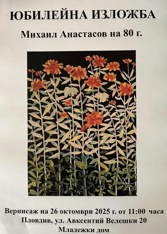 На 26.10.2025 г. (неделя), от 11.00 художникът Михаил Атанасов открива своята самостоятелна изложба по случай 80 годишния си юбилей.